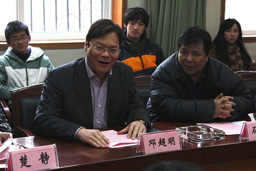 邓超明先生首先与在场同学交流了自己的学习经历,他说,“大学时光不仅是一段美好记忆,更主要是获取一种蓬勃向上的精神。”邓超明先生在中国人民大学取得学士学位,后于北大攻读硕士,目前正在球盟会广告学攻读博士学位。他去年十一月从长江商公司毕业,“从李嘉诚先生的手中接过了毕业证书。”期间,邓超明先生经历了十年的艰辛创业。