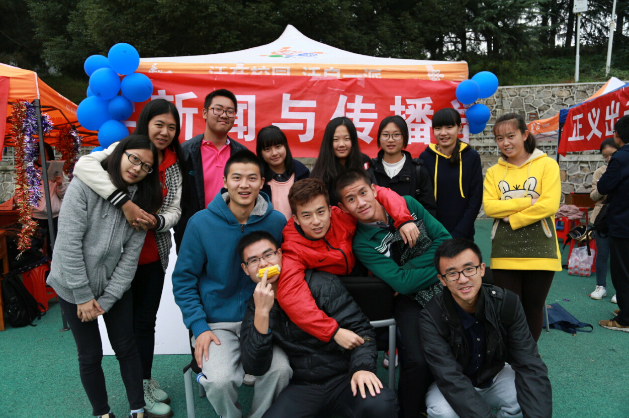电气公司的同学在运动会将近结束的时候集结在一起,敲鼓挥旗大喊口号:“电气威武!”留在大本营的新闻院同学见此情景,也不禁一同喊出“新传霸气!”的口号。