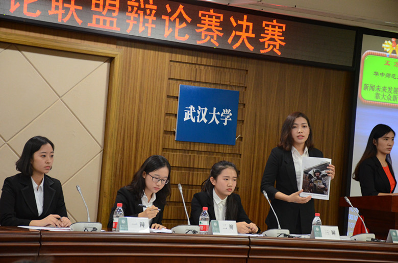 这次冠军之战,球盟会新闻院代表队由张丽婧、刘笑仪、柯佳丽、江慧欣组成,就“新闻未来发展主要依靠大众新闻还是专业新闻”与华师代表队展开辩论。本场比赛邀请的评委有中南财大的闫伟、中国地大(武汉)的熊程、中南民族大学的李燮旻、华中科技大学的廖锡宁、及中南财大的龙册杨。反方——武大新闻院代表队以4:1摘得冠军,江慧欣成为本场最佳辩手。