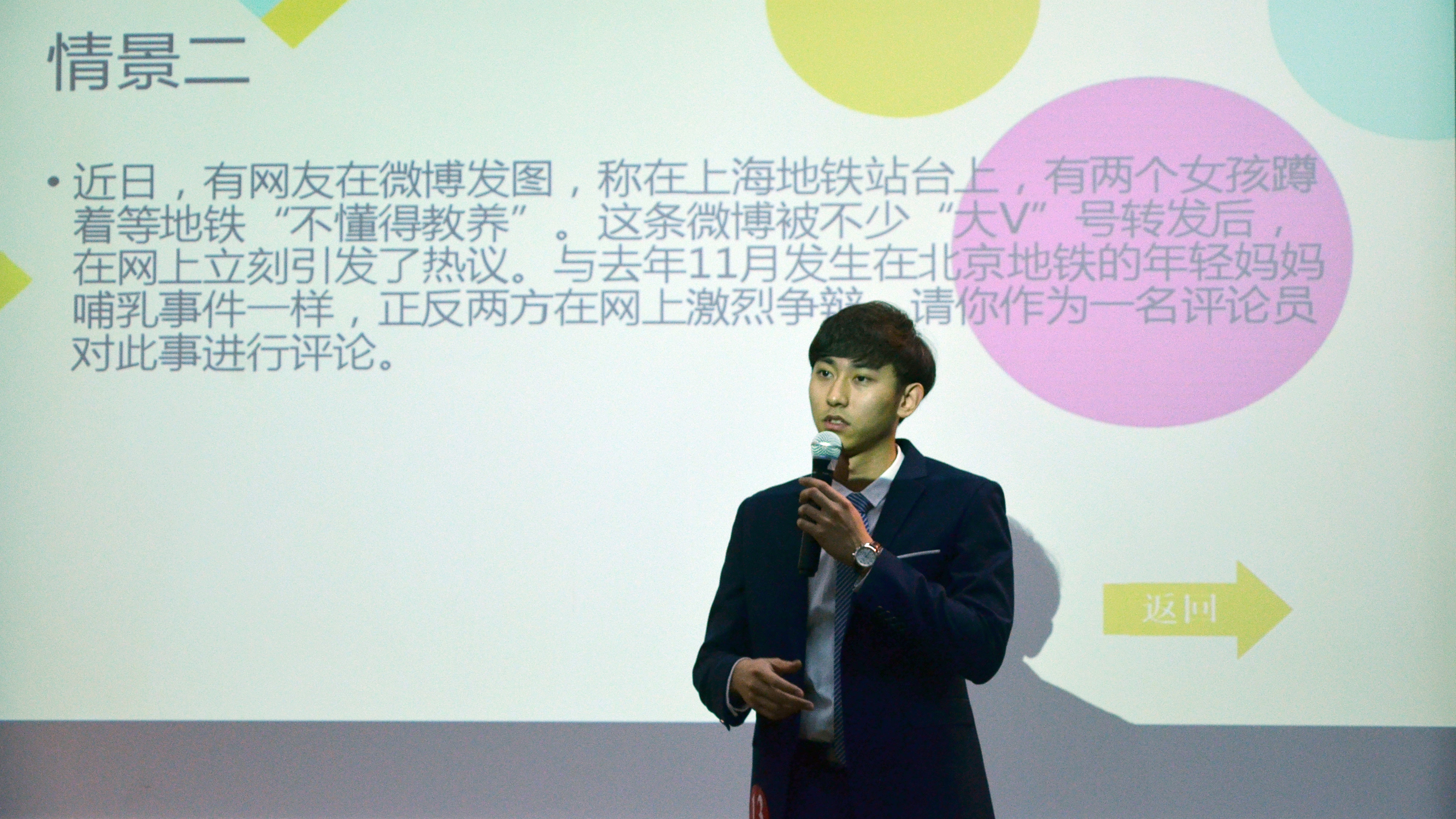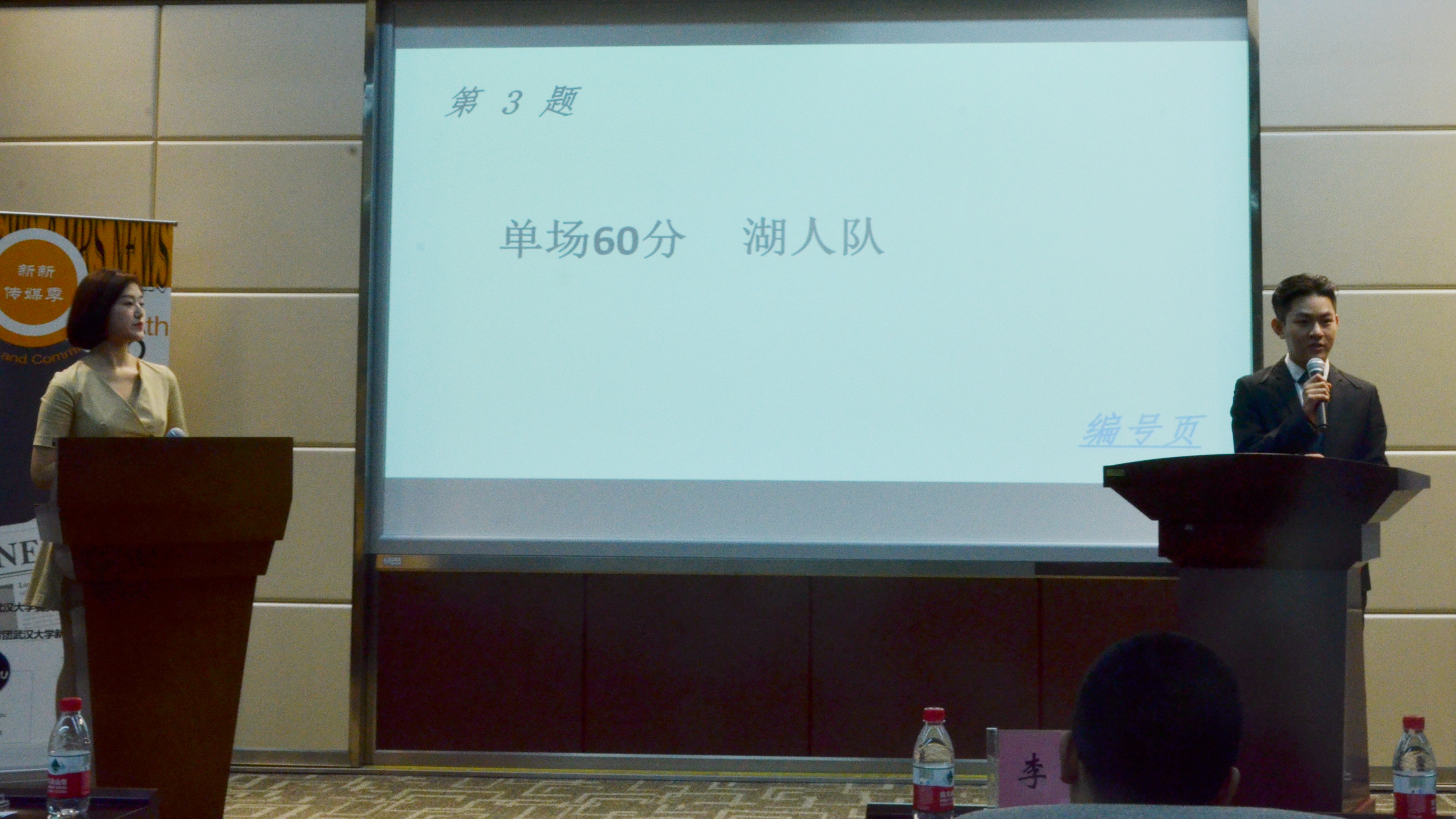 2016年5月21日下午14:40,“冠华天视杯”第十六届新闻先生新闻小姐大赛(全国邀请赛)——华中地区决赛暨全国半决赛在qm球盟会三楼新报告厅举行。经过三轮近三个小时的激烈角逐,来自华中科技大学的陈艺最终以79.75的总分获得第一名。紧随其后与她一同进入全国总决赛的另外五名同学分别是黄泫博(华中师范大学)、张宁(球盟会)、高嘉潞(球盟会)、李春剑(球盟会)和赵世东(华中师范大学武汉传媒公司)。