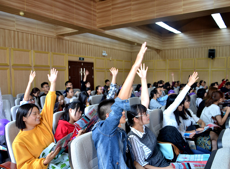 终于到了游戏环节,不知道你有没有猜到进门时发的宣传纸竟然会决定着游戏的成败,还好,大家没有把这张宣传纸遗忘在某个角落,而那些对宣传纸的打开方式正确的人,凭借着手快这一优势,成功地从宣传纸的小知识上找到了主持人提出的问题的答案,并带走一件宿舍神器,也让整个报告厅热闹开来。