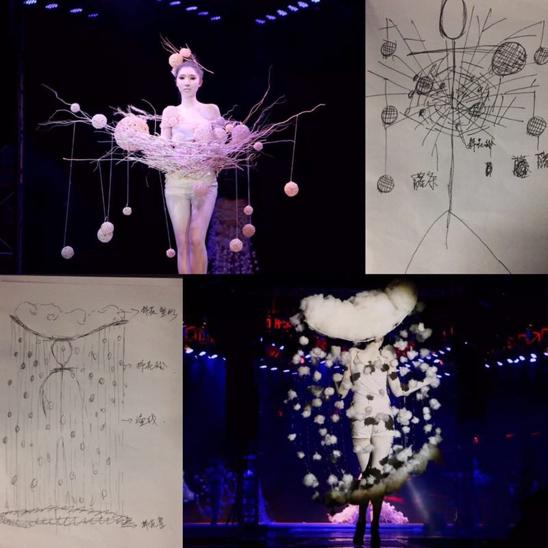 9月25号,迎新晚会结束不久后主席杨绍湫就开始考虑今年的金秋服饰。当提及素材的选择时,他笑着说:“说出来你可能不信,今年不是流行《阴阳师》吗?我那天抽到了阎魔,一个角色名,她坐在一片云上,我觉得这样的云特别好看。我就说什么样的东西能做成云的样子呢?那就是棉花了。所以最终就定的是棉花。”