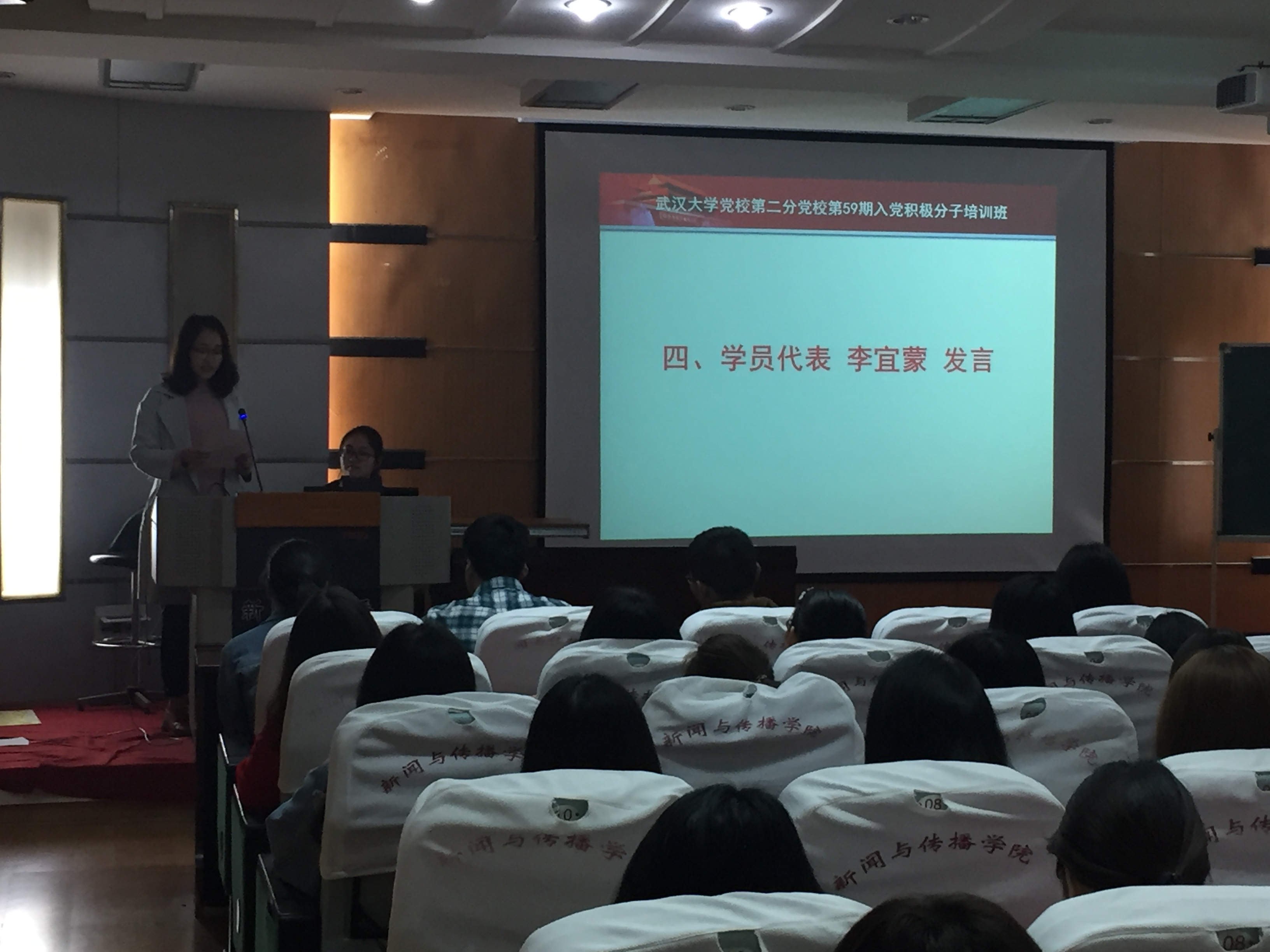 在简短而庄重的仪式后,夏建国老师就“党的性质和宗旨”这一主题展开第一讲。她通过生动的案例深入浅出地解读了党的性质和宗旨,分析了中国共产党成功的历史原因与自身特点。她强调,党之所以能成功,正是因为他代表了最广大人民的根本利益,获得了人民群众的支持;她还指出,中国共产党成为中国特色社会主义事业的领导核心,是人民的选择,是历史的必然;他最后讲解了党的性质和党性的区别。整个课程师生互动良好,多次响起热烈掌声。