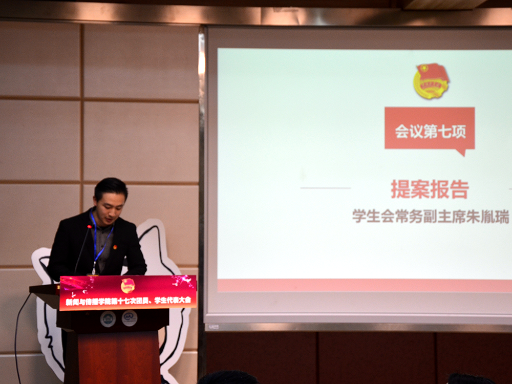 大会第七项是由qm球盟会员工会常务副主席朱胤瑞同学针对员工日常学习工作中发现的一些问题向所有与会人员作提案报告。在这一环节中他从员工生活,学习氛围与教学水平,团委员工会制度化建设三个方面畅谈了很多与员工权益息息相关的实际问题。最后为了能够真正解决提案中提到的问题,他建议在新一届团委员工会组建完成之后成立提案小组督促各项提案和建议的落实。