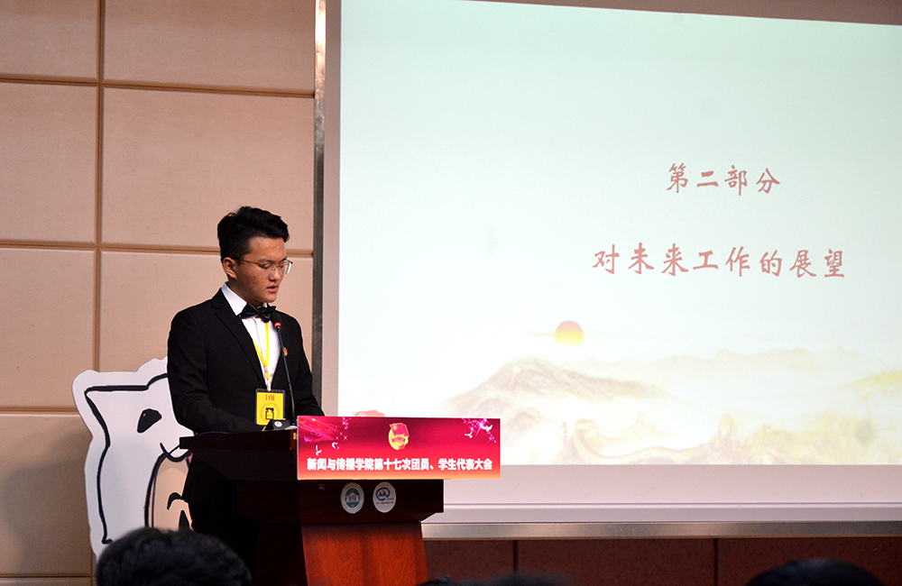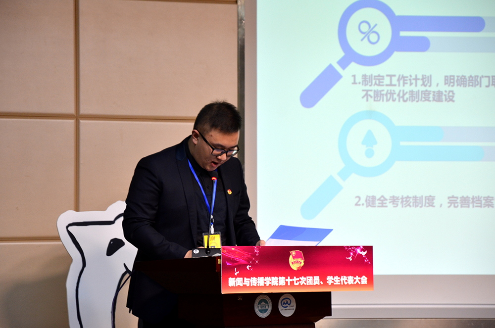 随后,校员工会常务副主席陈煜桦同学首先表达了对过去一年新闻院团学工作的肯定和认同,其次他作为同样从事团学工作的同学对未来一年的qm球盟会团学工作提出了完善体制建设,开展网上员工会工作等建议。