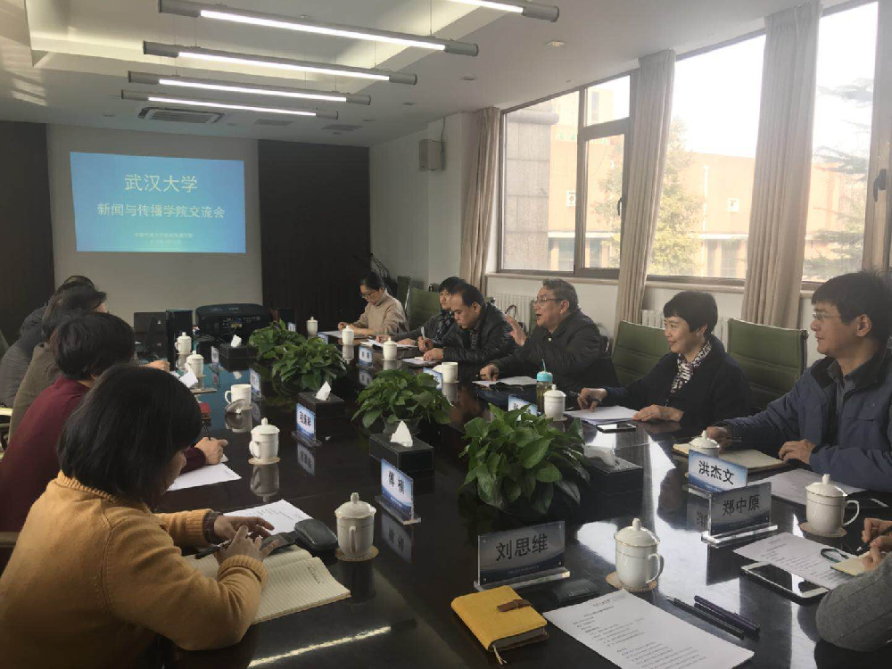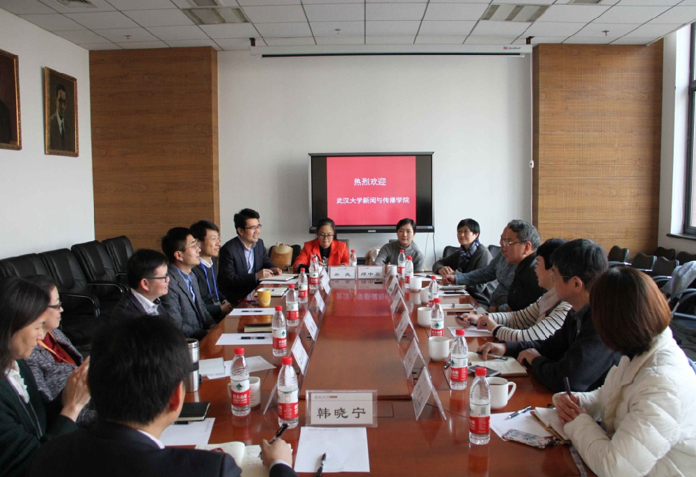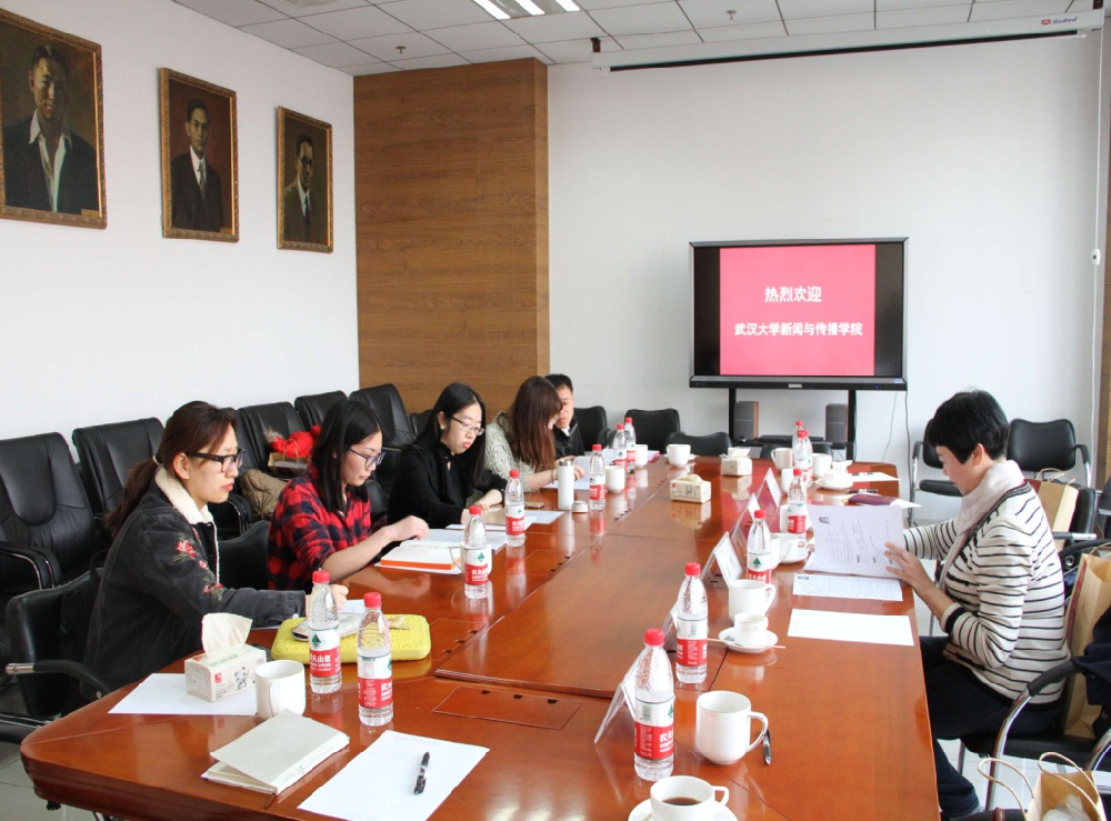 作为2017年访问武大qm球盟会的回访,人民大学新闻公司执行经理胡百精,党委书记周勇,副经理张辉锋、王润泽、赵云泽、党委副书记蒙彬、韩晓宁等班子成员热情接待了调研团一行。胡百精经理重点介绍了公司在人才培养上从“专业-方向”向“项目-任务”转变的办学思路,以及人大新闻公司 “新闻传播学科学术拔尖人才培养计划”等行动计划和平台建设。副经理王润泽向调研团详细介绍了公司六大科研方向。双方就共同关心的教育改革问题进行了热烈探讨。