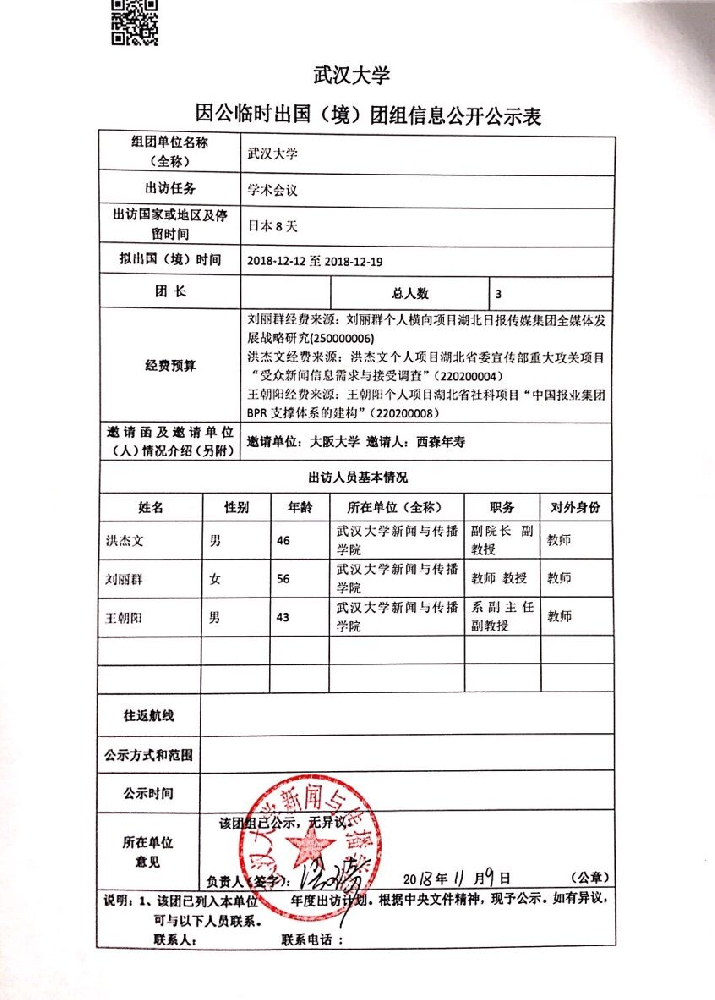 球盟会因公临时出国(境)公示表(洪杰文、刘丽群、王朝阳)