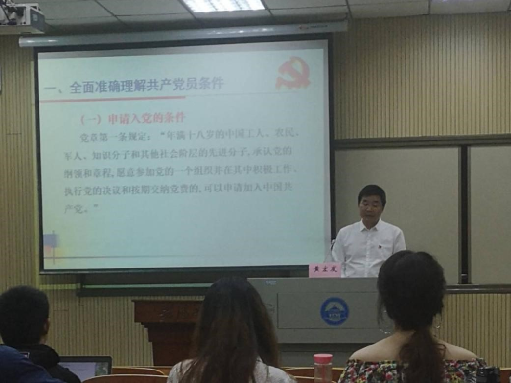 最后,开班式在雄壮的国际歌中落下了帷幕。紧接着,黄宏发书记为学员们讲授了第一讲——党员条件和入党程序,学员们的党校理论学习也正式宣告开始。