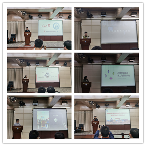 随后,6名2016级优秀实习生代表依次上台进行了实习经验的分享与交流。他们结合自身的实习经历,从不同的角度出发,针对实习工作内容、实习经验感悟、专业能力提升、为人处事态度等多方面进行了经验的分享。新闻班优秀实习生代表朱战缘同学,以“人民日报的知与行”为主题,讲述了自己在人民日报的实习经历,并对即将迎来专业大实习的2017级本科生可能面临的问题和困惑进行了解答。广告班优秀实习生代表崔磊同学,则以在腾迈广告公司的不同视角,为大家讲述了他在上海顶尖的广告公司实习中经历的酸甜苦辣百般滋味并鼓励学弟学妹提前做好知识和心理的双重准备,以自信的态度拥抱即将到来的专业大实习。接下来的四位2016级优秀实习生代表,广电班潘京叶、广设班兰雨欣、播音班乔晓亮、网传班何粒永,也分别从自己的实践感悟与实践经历出发,针对实习工作内容和工作建议进行了分享,同时积极解答了各种问题与困惑。