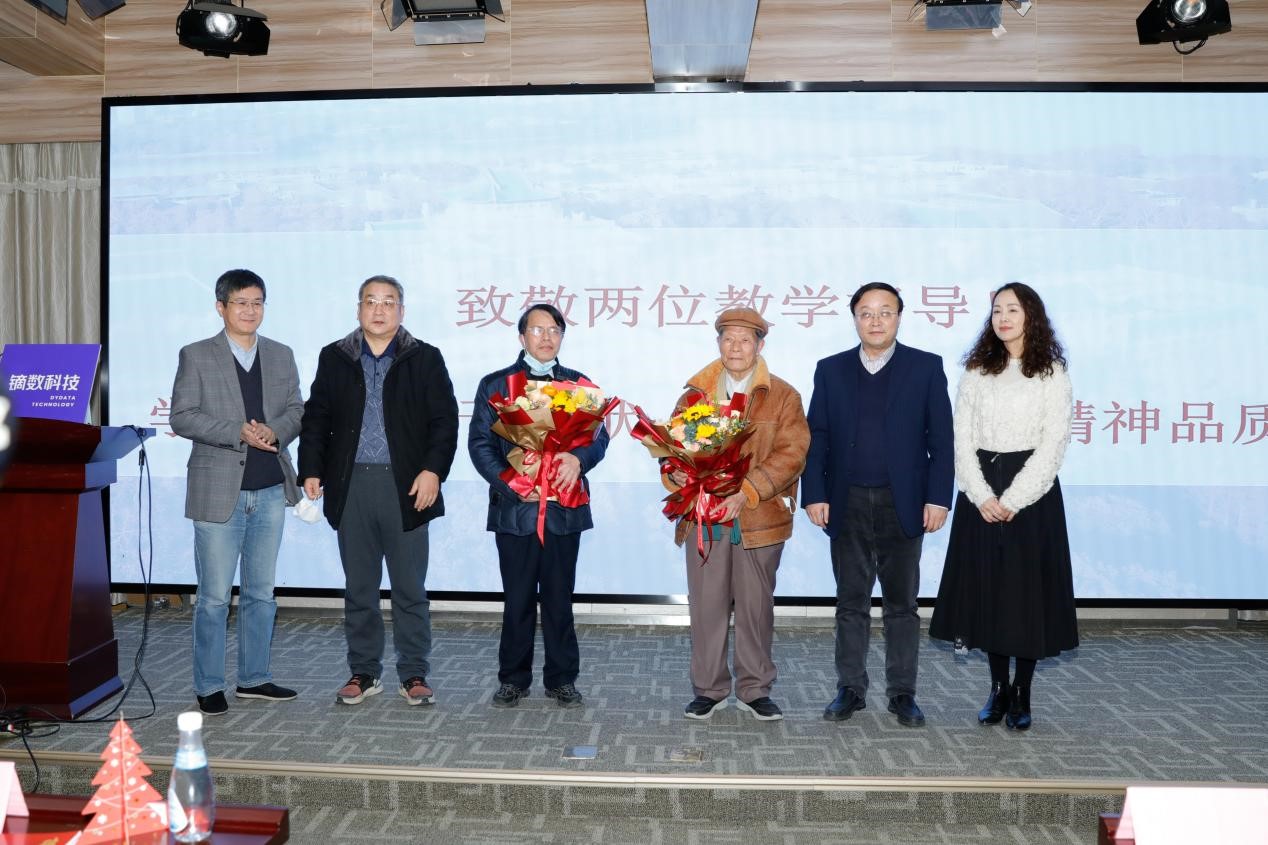 特别值得称道的是,本次活动有一个特别仪式,程明教授邀请教学督导胡武老师、夏冠英老师来到活动现场,致敬他们甘于奉献、不计名利的精神。督导文化是qm球盟会一种独特的文化,督导老师来到本科生、研究生的课堂上,针对教师课程讲授内容、方法提出鼓励与改进意见,他们为打造qm球盟会优质课程做出了巨大贡献。新闻与传播公司党委书记李玉龙、经理强月新、副经理洪杰文、王琼老师上台献花合影。