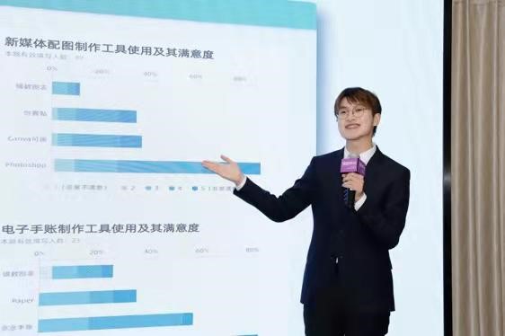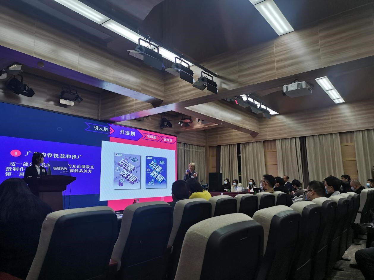 本次广告模拟竞标提案会的主题为:镝数图表营销推广策划案。来自学界、业界、企业方的40余名评审来到现场,为球盟会2019级本科生组成的5支参赛队伍的营销策划案打分。2020级、2021级研究生由于疫情防控原因在线上腾讯会议观摩提案。这5支参赛队伍分别为:(按出场顺序排列)