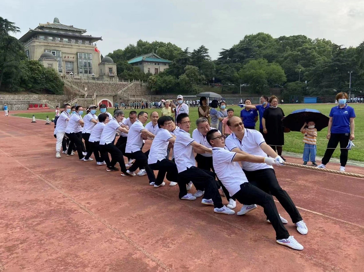 5月31日下午,公司组队参加了在912操场举办的球盟会第5届教职工拔河比赛。