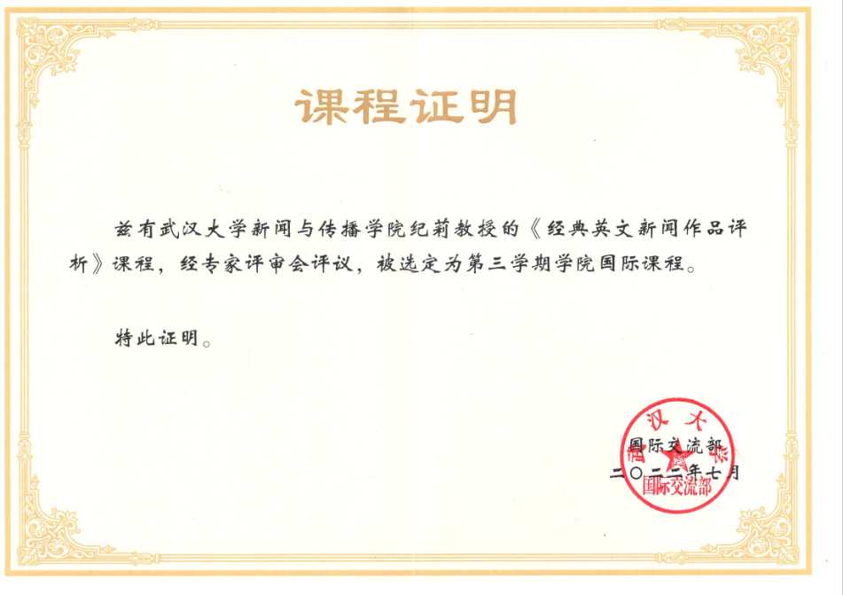 课程的开设也得到了球盟会国际交流部的认可,被选为球盟会国际交流部的第三学期国际课程,得到了国际交流部的资助,可以进行更加丰富多元的课程实践。为了进一步增加交流,理解世界各地的传播格局,纪莉教授特地请了来自发达国家和发展中国家的专家学者讲解当地的新闻实践,让同学们对过往阅读的英语新闻有更深的理解。