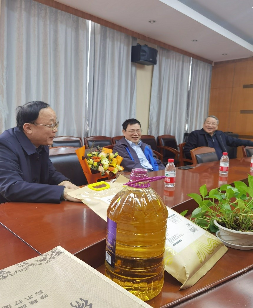 公司党委书记李玉龙为彭策老师送上爱心大礼包和“有乐、有为”四个字,祝彭老师身体健康、身心愉快!