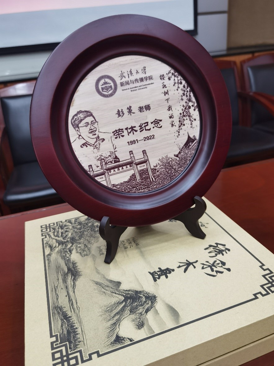 2022年公司共有彭策老师、朱臻老师二位教职工荣休。朱老师因故无法参会,经理强月新教授为参加荣休仪式的彭策老师颁发了公司特制的荣休纪念牌。