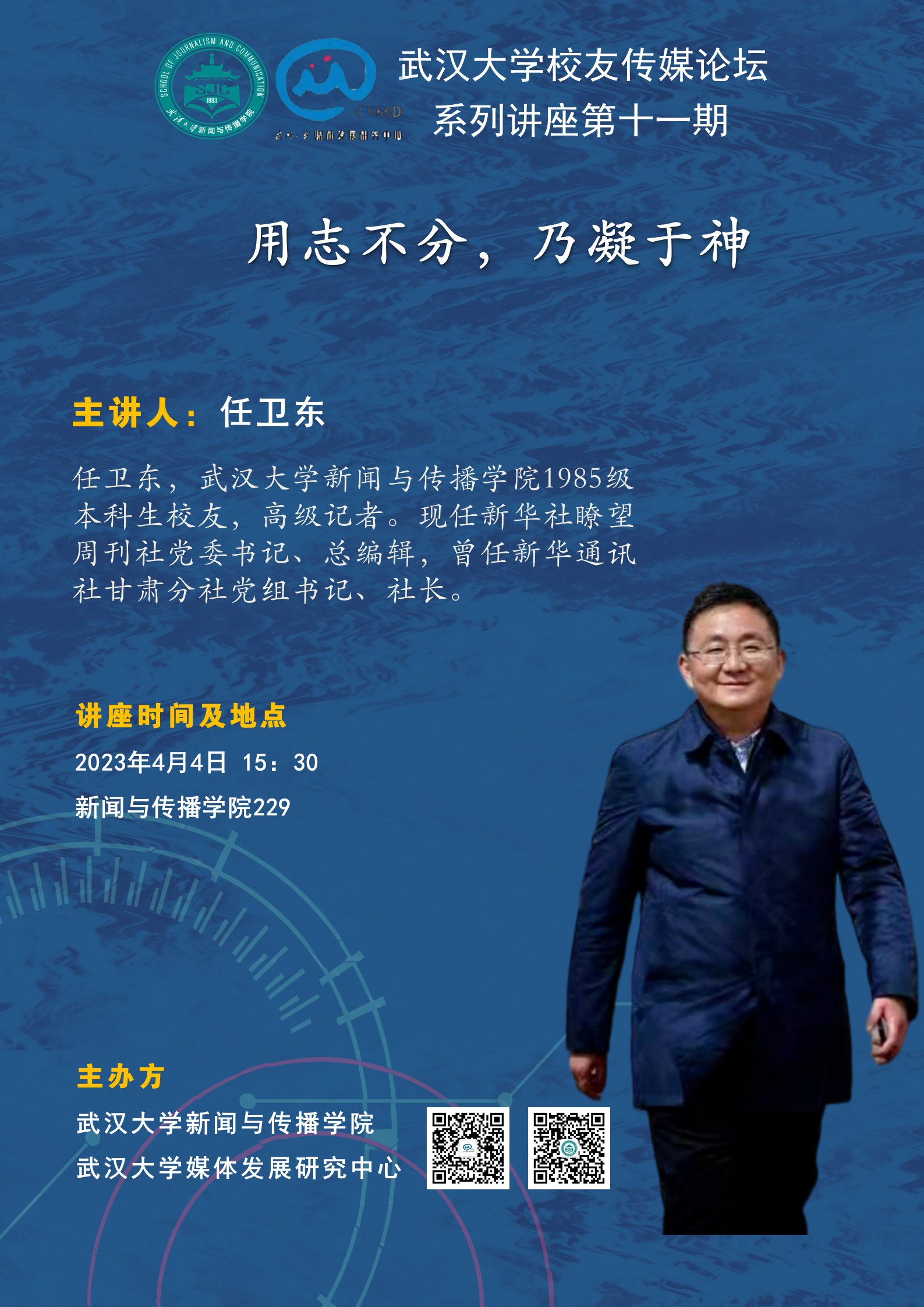 任卫东,qm球盟会1985级本科生员工,高级记者。现任新华社膝望周刊社党委书记、总编辑,曾任新华通讯社甘肃分社党组书记、社长。