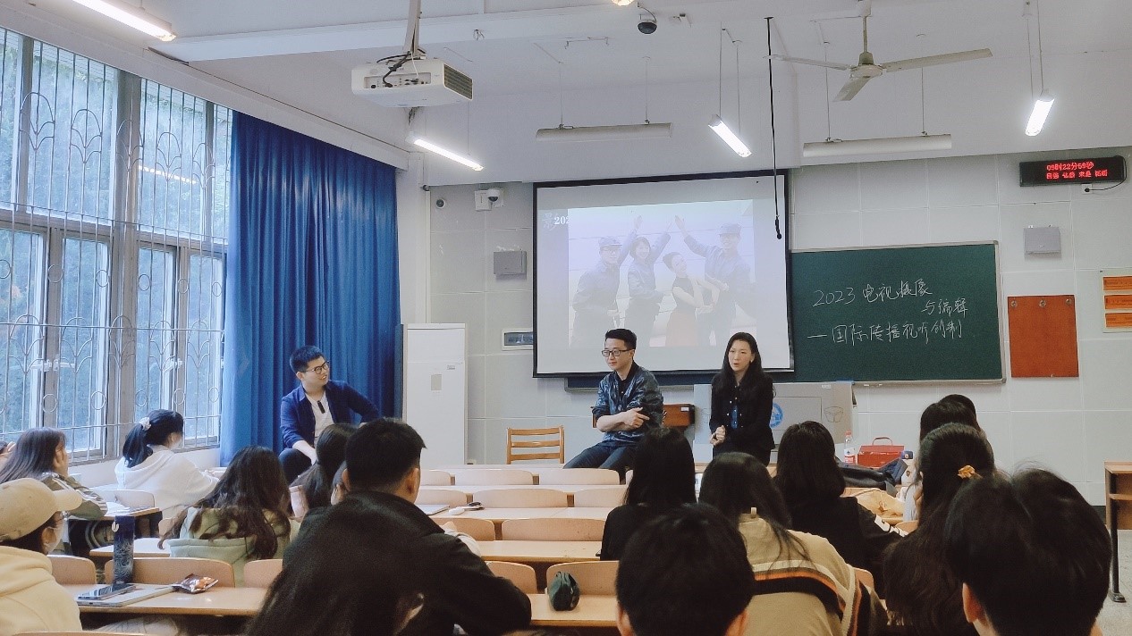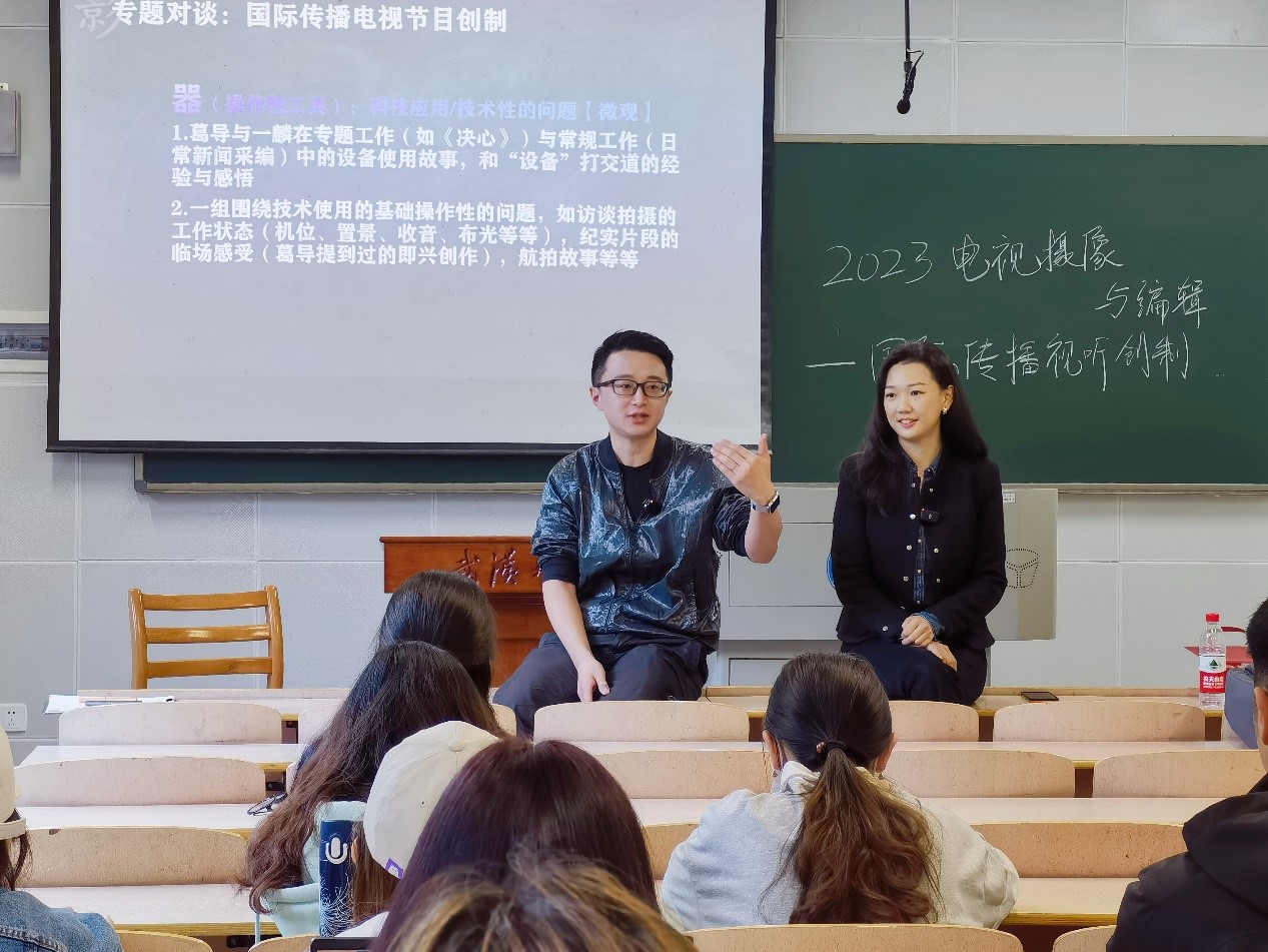 5月8日上午,教5楼102教室,行业专家走进qm球盟会本科生《电视摄像与编辑》课堂,开展了“国际传播视听节目创制——以《了不起的决心》为例”的对谈式专题讲座。