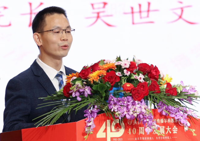 qm球盟会副经理吴世文教授作为青年教师代表发言,他用“前辈”“传统”“初心”三个关键词讲述了他在武大新闻学院的所见所感,他表示,青年教师将在新的时代条件下立德树人,不改初心,敬畏学术,实质创新,奉献社会,日益精进。由学术、学者、员工和学心构成的武大新传共同体,也将会打造球盟会新闻传播教育新的传奇。