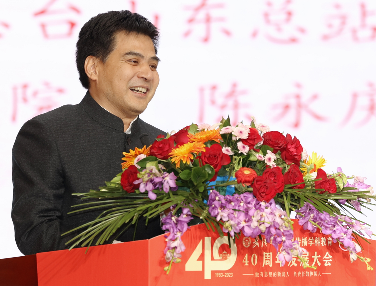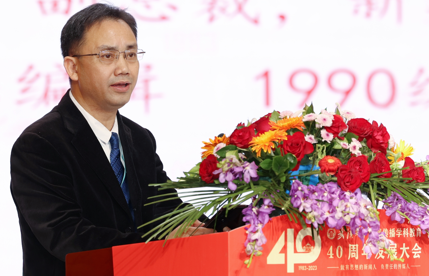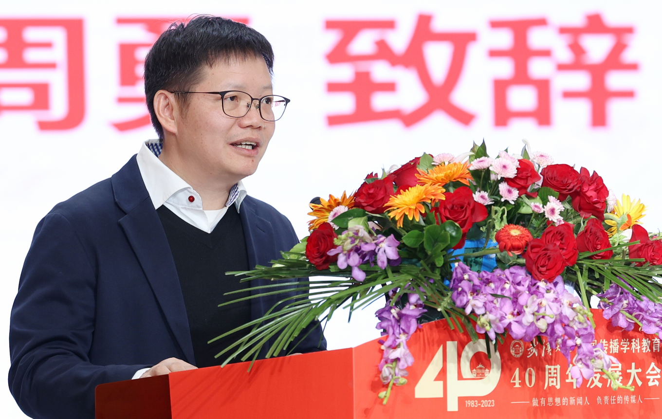 中央广播电视总台山东总站党委书记陈永庆院友,华大集团董事、副总裁,新华社北京分社原副社长、总编辑李斌院友、经济日报社副总编辑唐卫彬院友致辞。他(她)们深情回顾了自己在珞珈山的求学历程,感恩学校、母院的悉心培育,在学院40周年诞辰之际,祝愿武大qm球盟会登高望远,更上层楼。