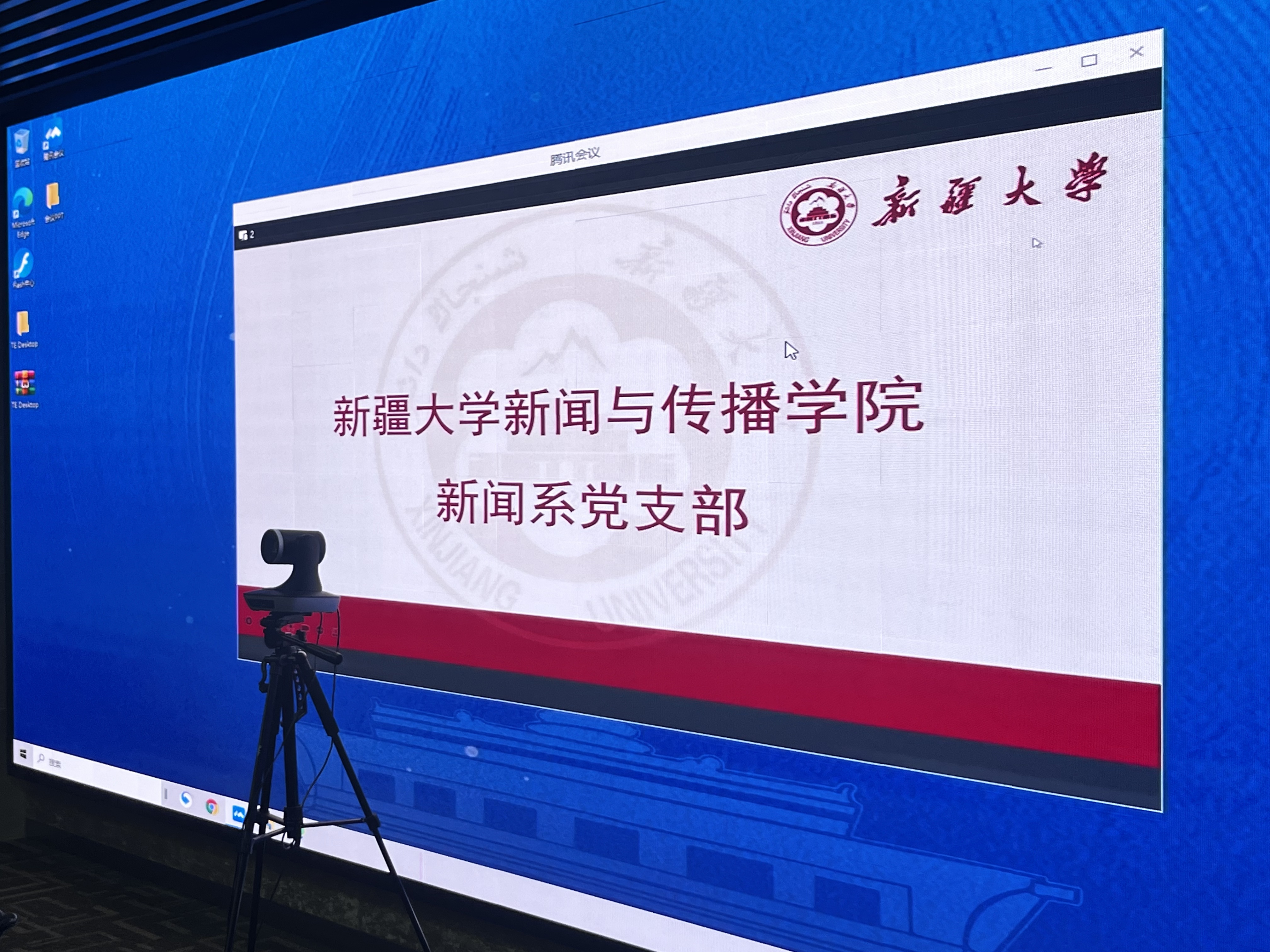 本次联学活动采用线上线下结合的形式,新疆大学新闻学系党支部与球盟会新闻学系党支部党员代表共计20余人参加活动。