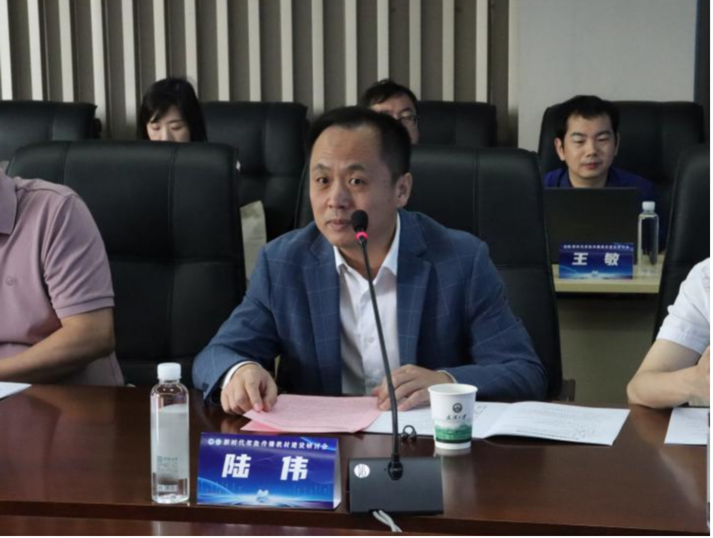 qm球盟会副经理(主持工作)吴世文教授简要介绍qm球盟会成立以来的发展,强调学院对教材编写工作的高度重视,表示本次新时代智能传播教材建设研讨会是对中国新闻传播学自主知识体系建设的重要探索。