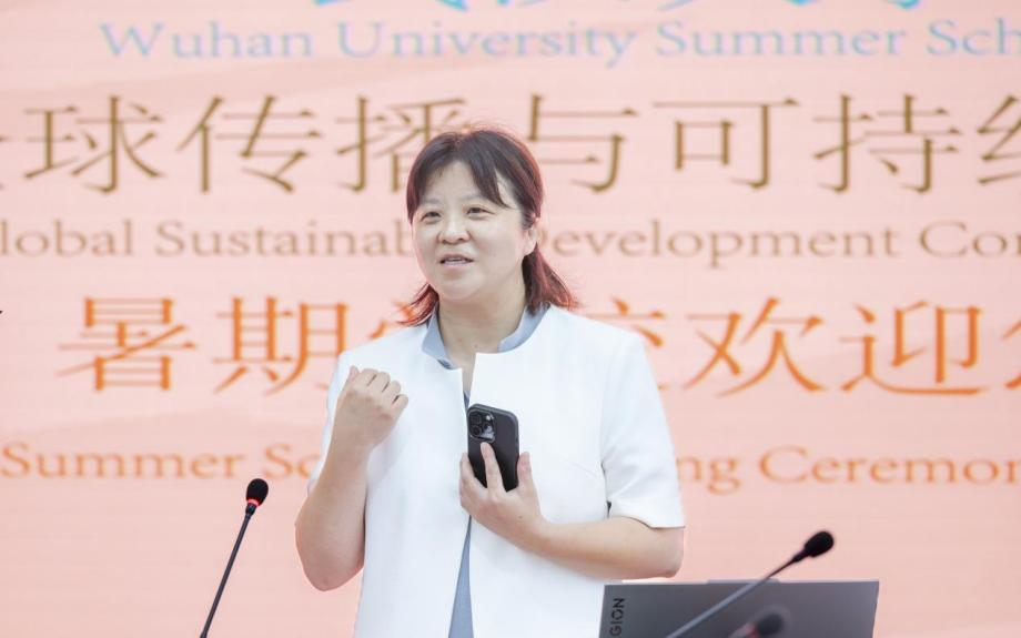 在往届营员代表发言结束后,夏令营负责人纪莉教授为同学们勾勒出了一幅立体的传播实践图景:本次暑期学校将在长江文化研究院、武汉汉阳区委宣传部支持下探索长江生态文明,携手东湖长江传媒记者站、湖北日报国际传播中心守护长江文化遗产,联动湖北画报国传中心解码长江科技创新。“这不仅是文化之旅,更是践行习近平总书记‘可持续发展是破解全球问题的金钥匙’的生动课堂。”纪莉教授特别提到,暑期学校恰逢中国—中亚峰会等重大外交行动,将为国际青年理解中国智慧打开新的窗口。